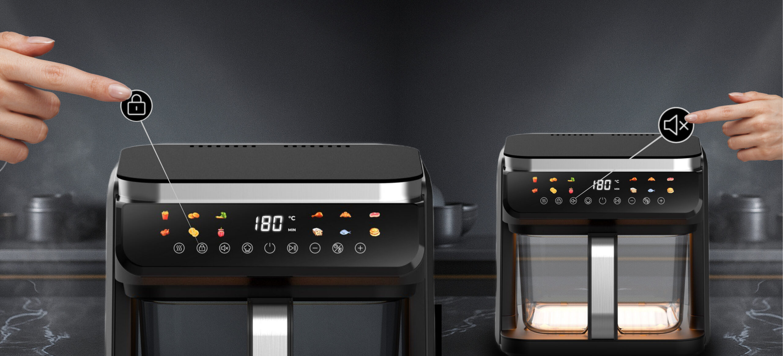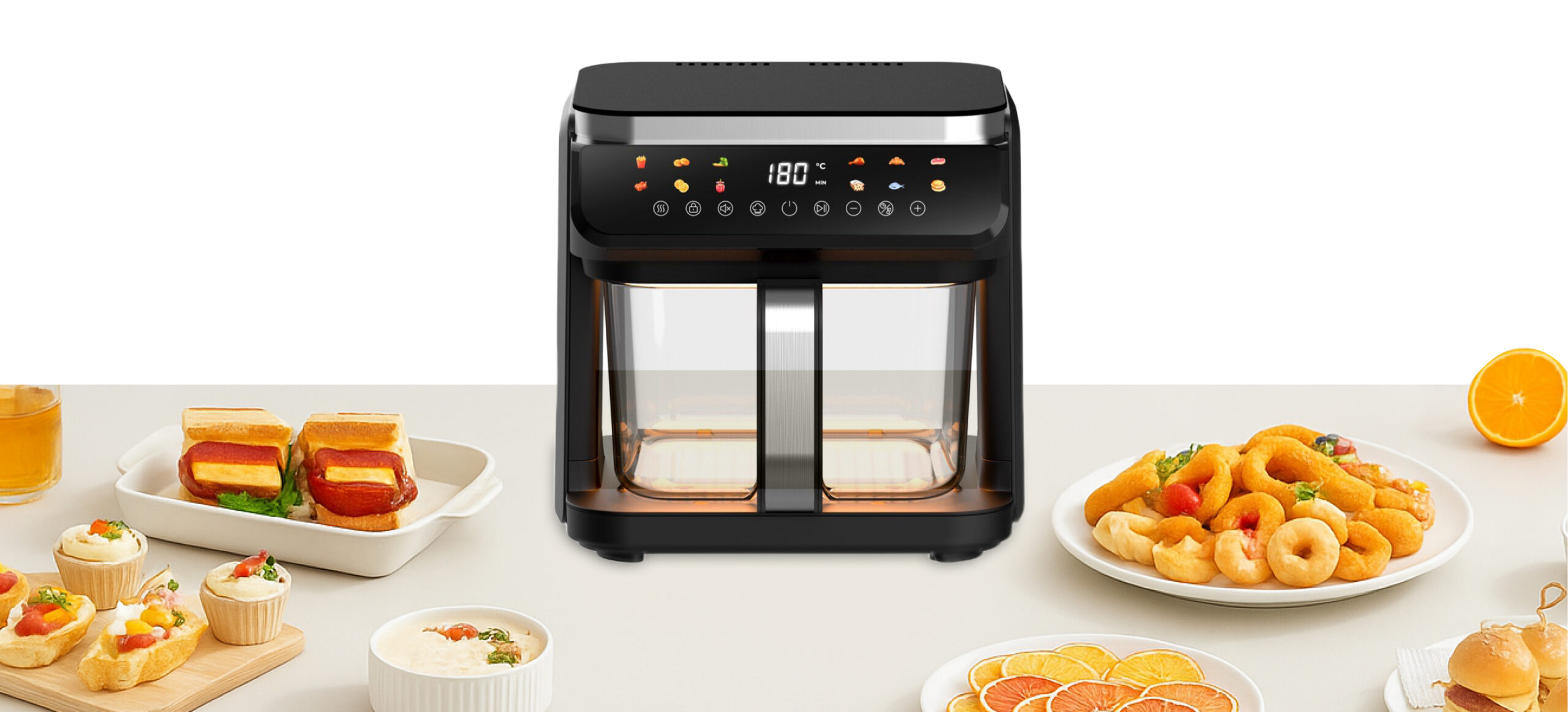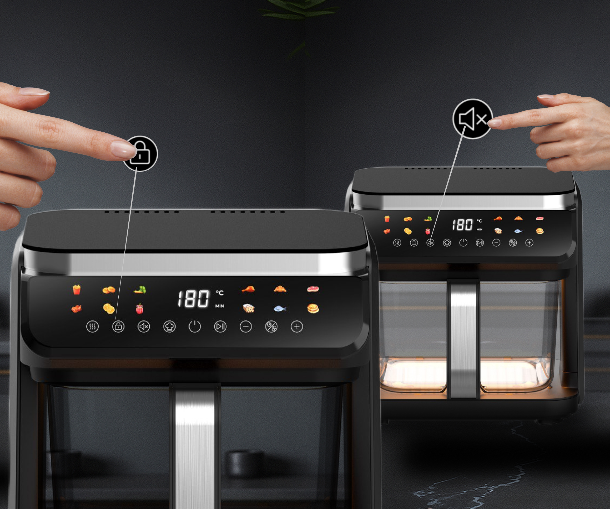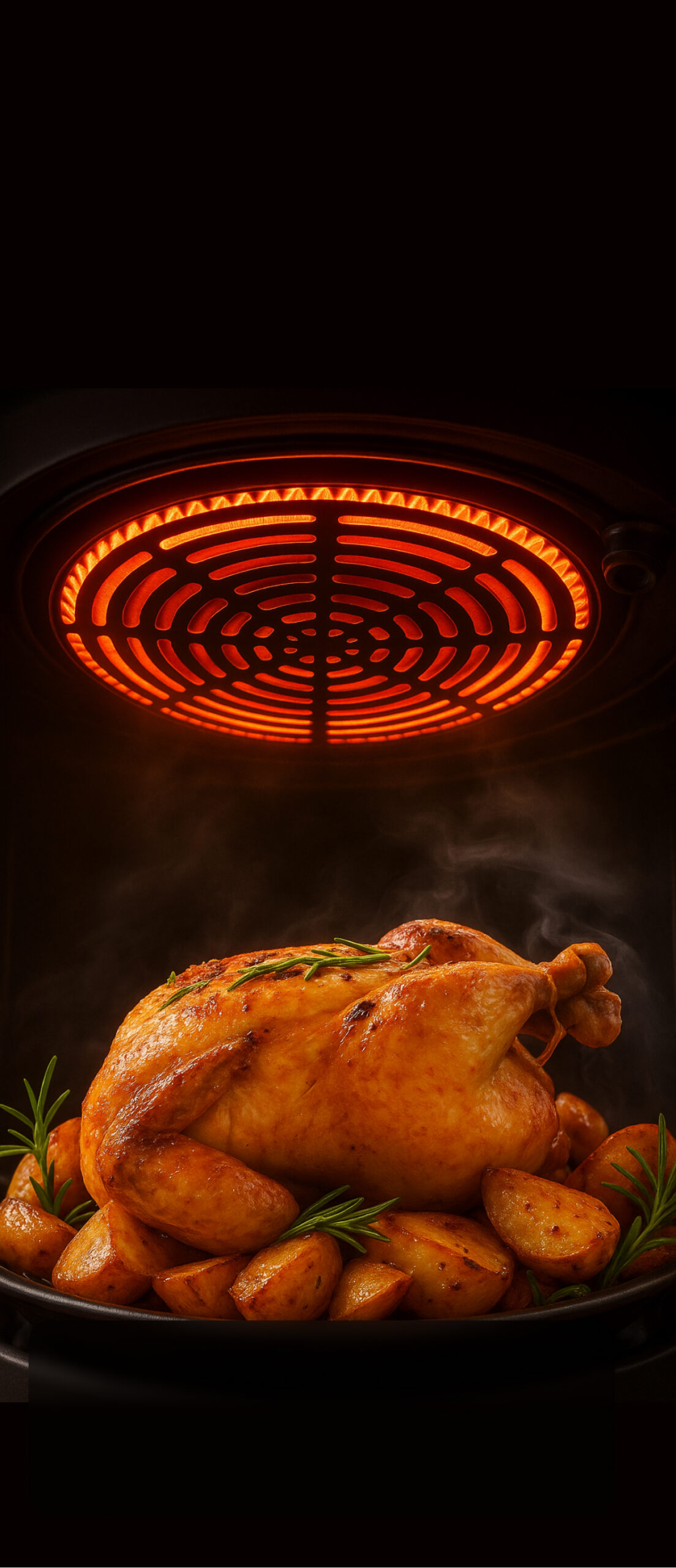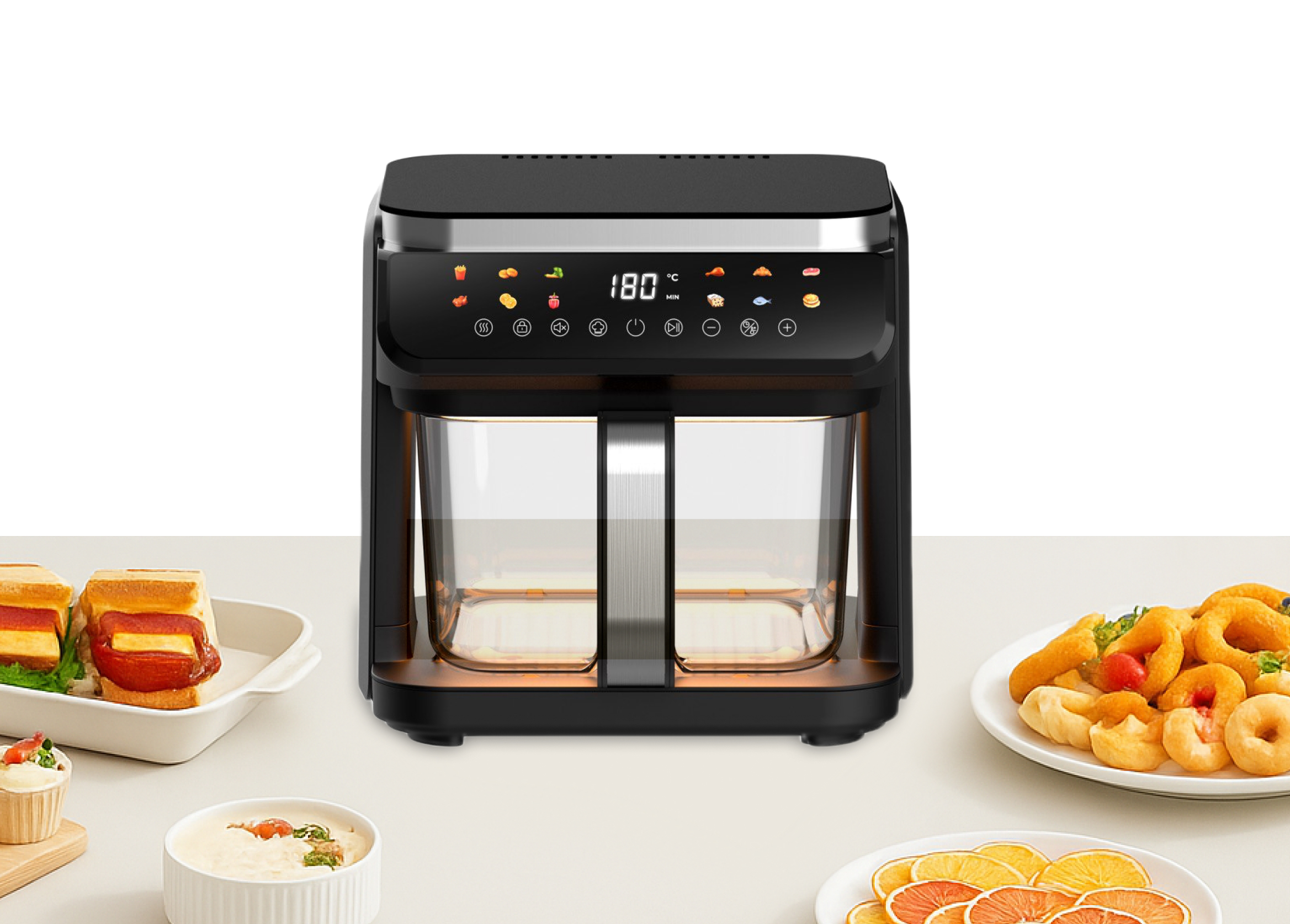 Аэрогриль оснащён вместительной чашей 5,5 л из ЭКО-стекла с толщиной стенок 5 мм, что помогает обеспечивать равномерный нагрев и стабильный результат. Такой объём удобен для повседневных блюд и приготовления еды для всей семьи.