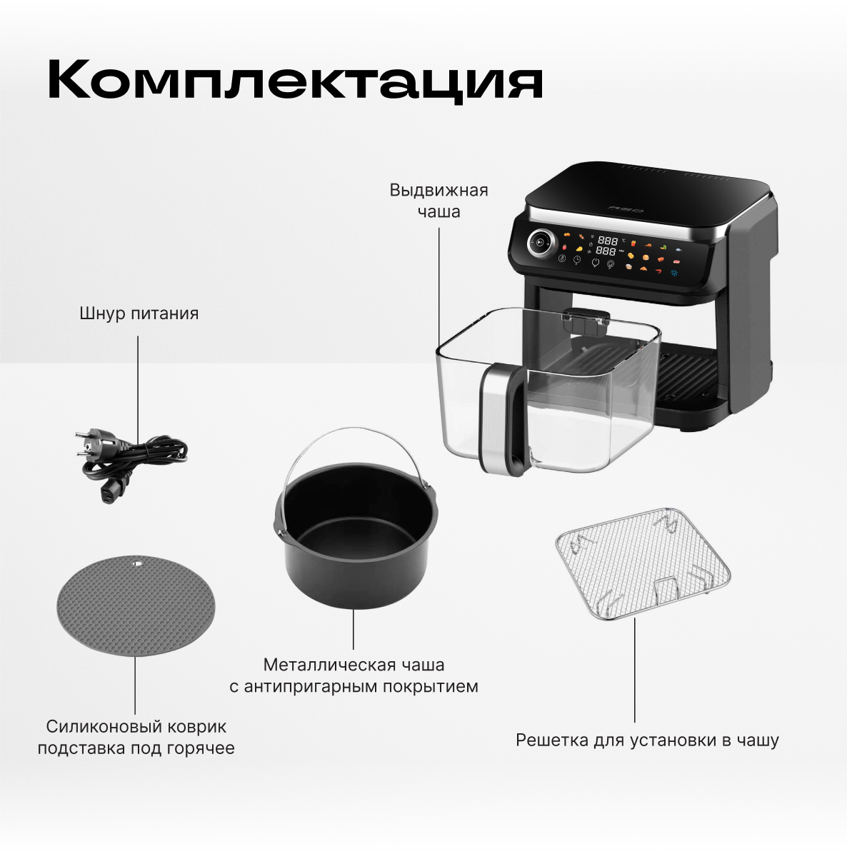 ECO аэрогриль RED ColorCook G500 в чёрном корпусе — это современный кухонный прибор для быстрой и полезной готовки с минимальным количеством масла. Модель подойдёт для ежедневного использования дома, когда важны вкус, удобство и контроль процесса приготовления.